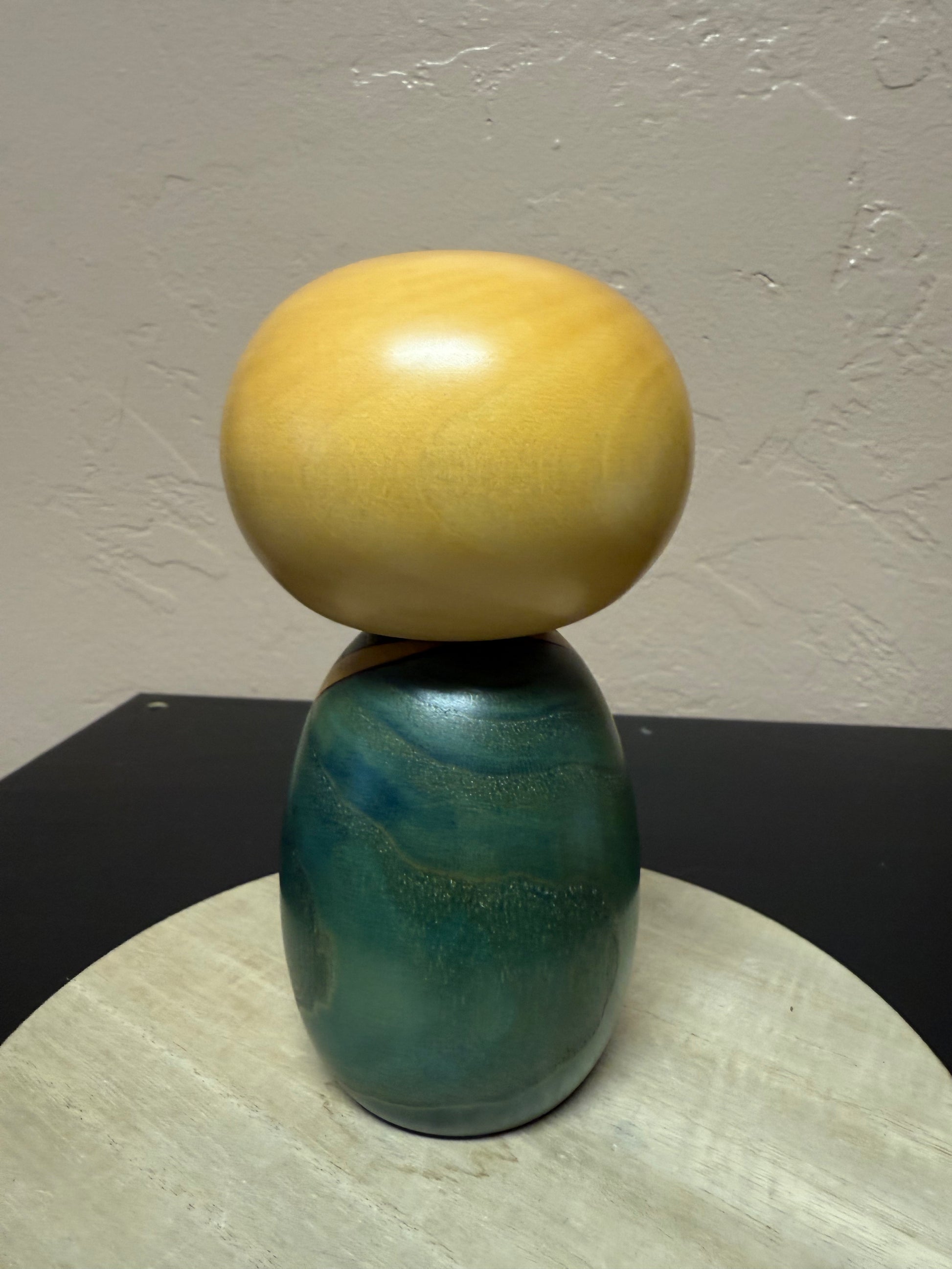 Note: color will transfer or stains if touch and unwaxed kokeshi.