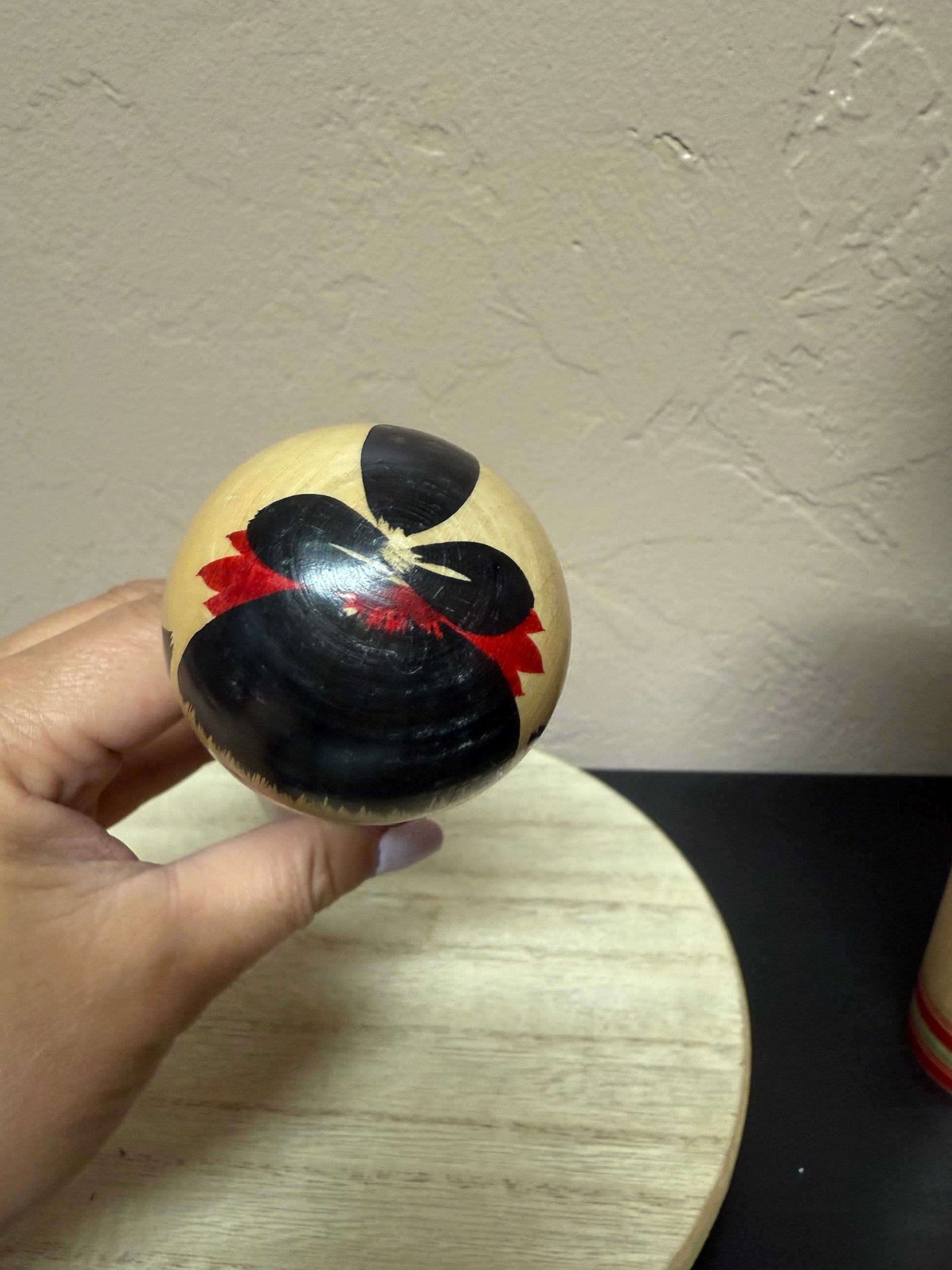Avoid placing the kokeshi in a humid or extremely dry place which will stains or cracks.