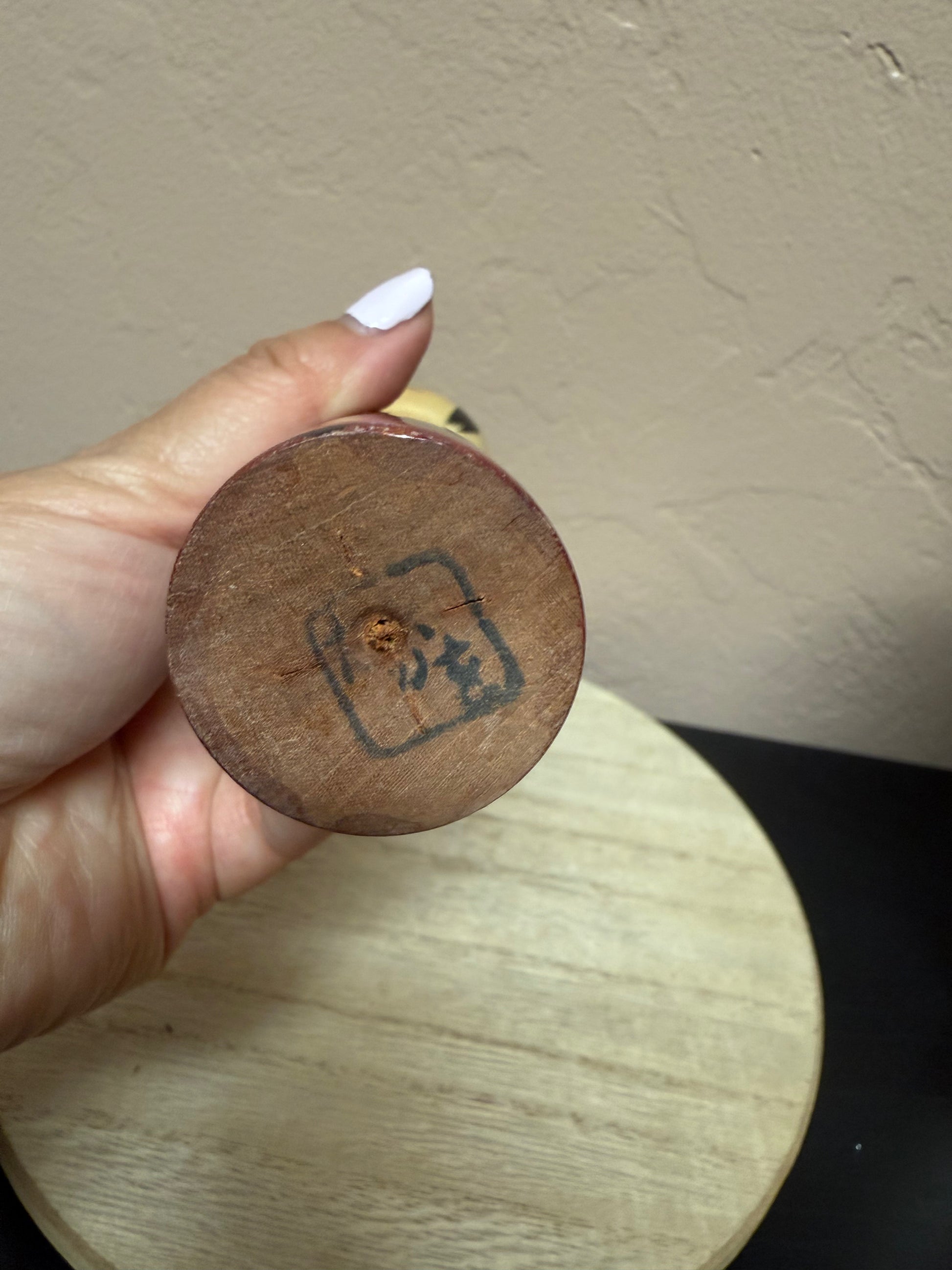Note: color will transfer or stains if touch and unwaxed kokeshi.