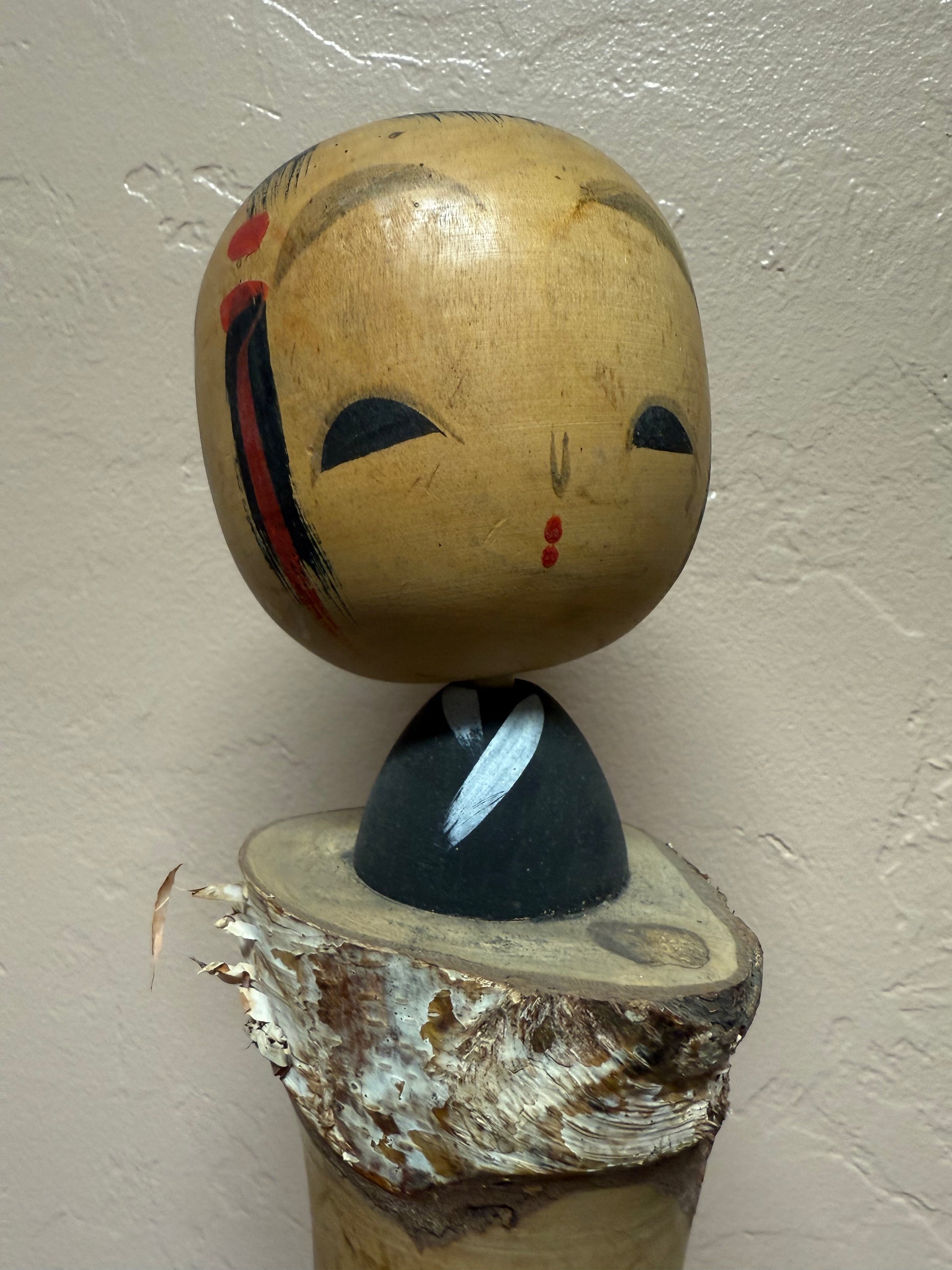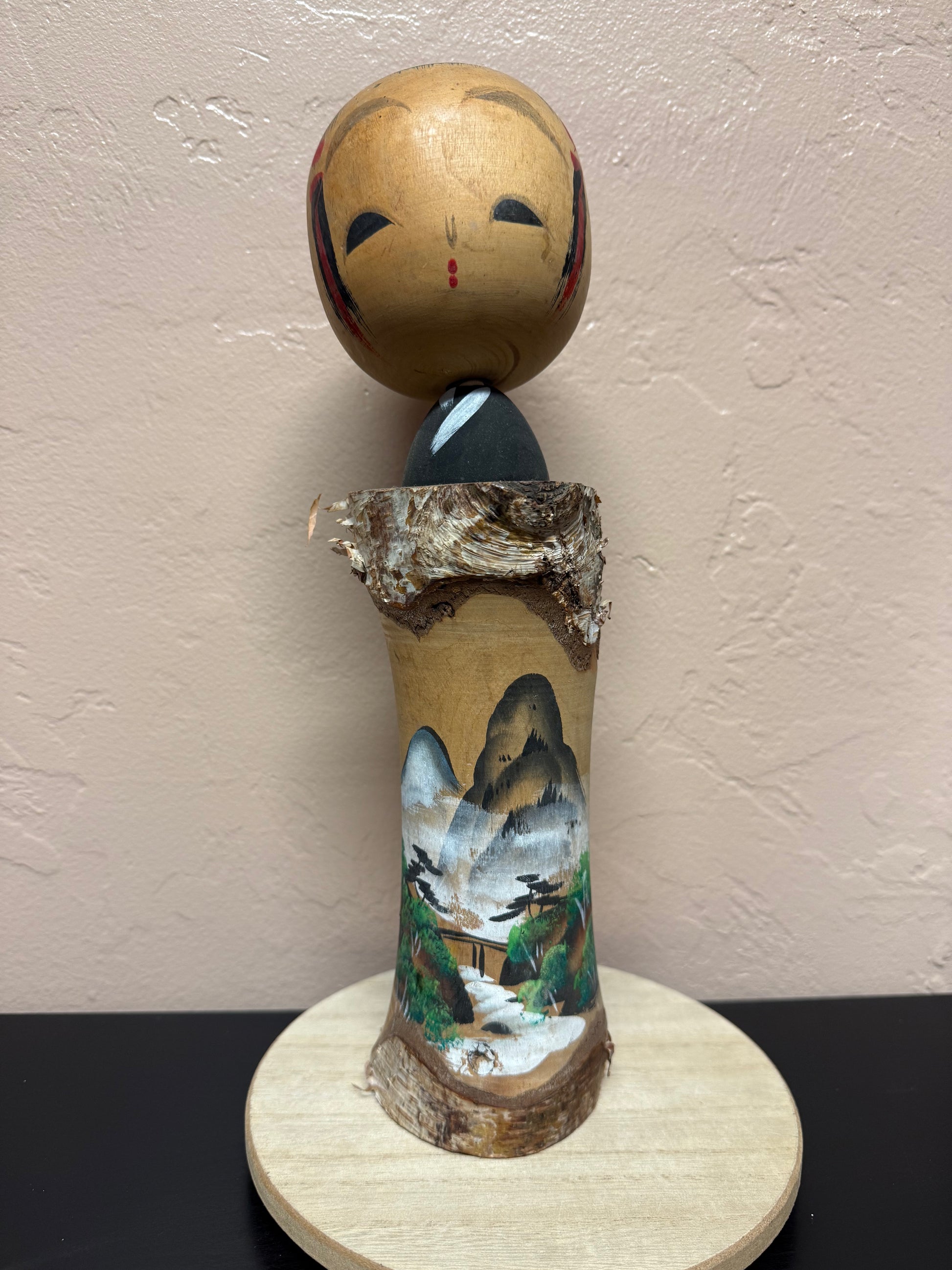 Note: color will transfer or stains if touch and unwaxed kokeshi.